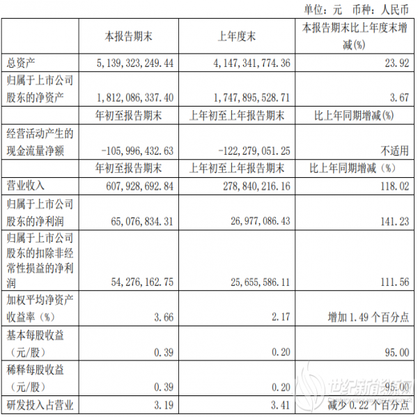 張家港廣大特材股份有限公司(簡稱“廣大特材”)日前發(fā)布2021年第一季度報告。該公司一季度實現(xiàn)主營業(yè)務收入6.08億元,同比增長118.02%;實現(xiàn)歸屬于上市公司股東的凈利潤0.65億元,同比增長141.23%。